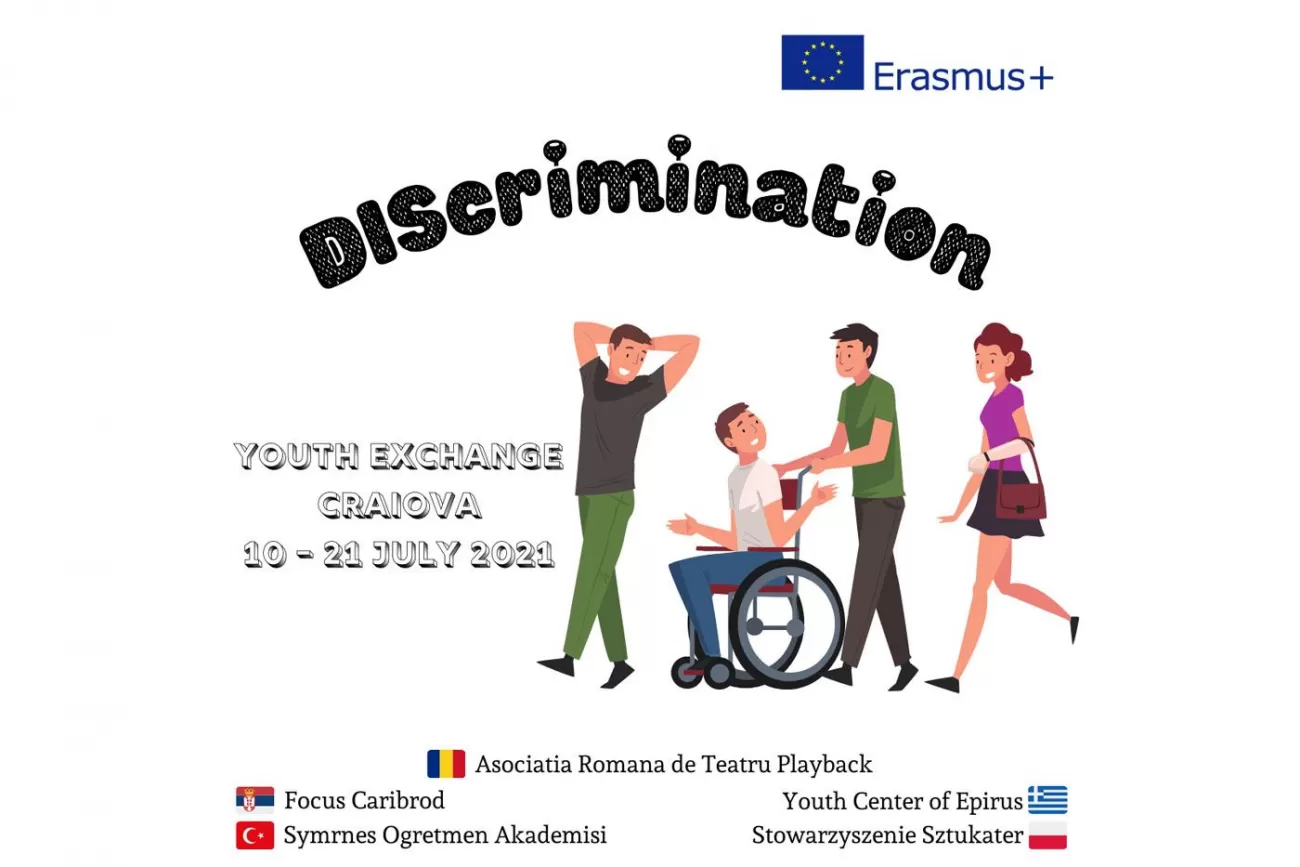 Asociatia Romana de Teatru Playback implementeaza proiectul „ DIScrimination”, in perioada 10– 21 iulie 2021, in Craiova, numar de identificare 2019-3-RO01-KA105-077937, finantat de Comisia Europeana prin intermediul Programului ERASMUS +, Actiunea K1- Schimb de tineri.